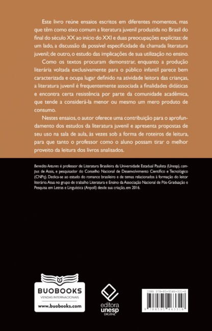 Este livro reúne ensaios escritos em diferentes momentos, mas que têm como eixo comum a literatura juvenil produzida no Brasil do final do século XX ao início do XXI e duas preocupações explícitas: de um lado, a discussão da possível especificidade da chamada literatura juvenil; de outro, o estudo das implicações de sua utilização no ensino. Como os textos procuram demonstrar, enquanto a produção literária voltada exclusivamente para o público infantil parece bem caracterizada e ocupa lugar definido na atividade leitora das crianças, a literatura juvenil é frequentemente associada a finalidades didáticas e encontra certa resistência por parte da comunidade acadêmica, que tende a considerá-la menor ou mesmo um mero produto de consumo. Nestes ensaios, o autor oferece uma contribuição para o aprofundamento dos estudos da literatura juvenil e apresenta propostas de seu uso na sala de aula, às vezes sob a forma de roteiros de leitura, para que tanto o professor como o aluno possam tirar o melhor proveito da leitura dos livros analisados.