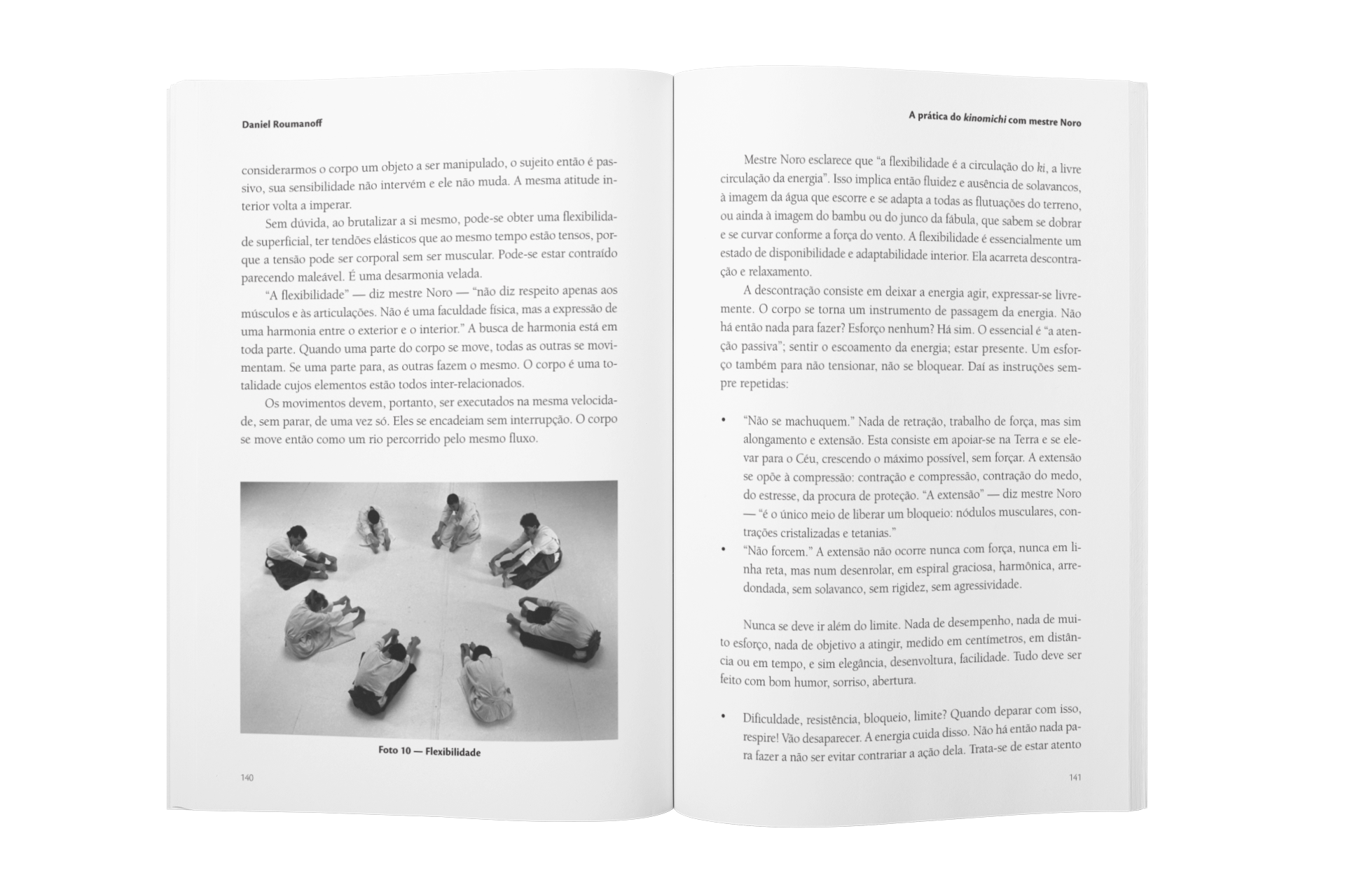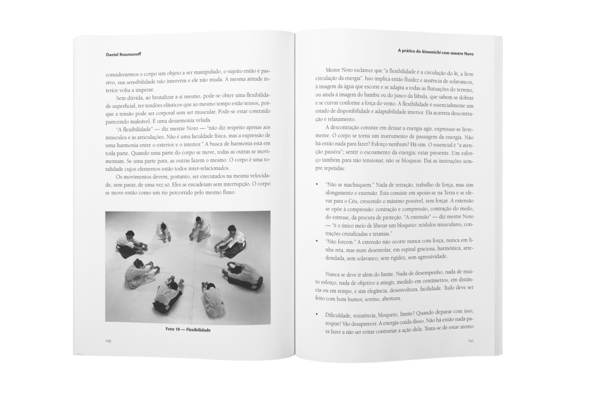 Este livro, escrito por Daniel Roumanoff, um dos alunos mais antigos e próximos de mestre Noro, oferece um olhar íntimo e profundo sobre essa abordagem. Mais do que um manual técnico detalhado, a obra funciona como um testemunho da transmissão dos ensinamentos de Noro ao longo de muitos anos de prática conjunta. Roumanoff explora a essência e o espírito do kinomichi, abordando os princípios fundamentais da prática, como: