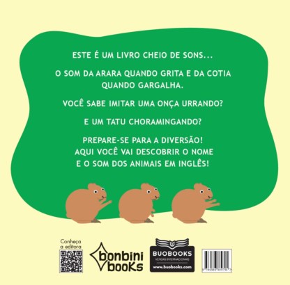 O livro é acompanhado pelo som verdadeiro dos bichos e pela narração do texto em inglês, com acesso gratuito no canal do Youtube da Bamboozinho, convidando os leitores para aprenderem uma segunda língua e também sobre a natureza!