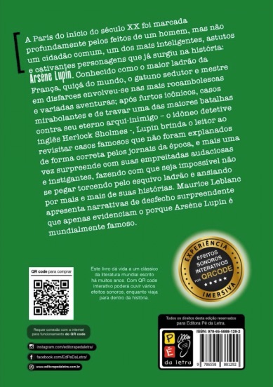 Uma das séries mais famosas da netflix agora em livro, e com QR code especial trazendo um pouco daquilo que está acontecendo para bem perto de você, Lupin. Na cronologia das aventuras de Arsène Lupin, Maurice Leblanc situa estas histórias antes de A Agulha Oca e 813. No terceiro livro da série, encontramos Lupin do início, sedutor, sempre bem-sucedido, seja nas situações perdidas (A armadilha infernal) ou nos enigmas mais impossíveis de resolver (notadamente em O signo da sombra e A echarpe de seda.) Você não pode perder!