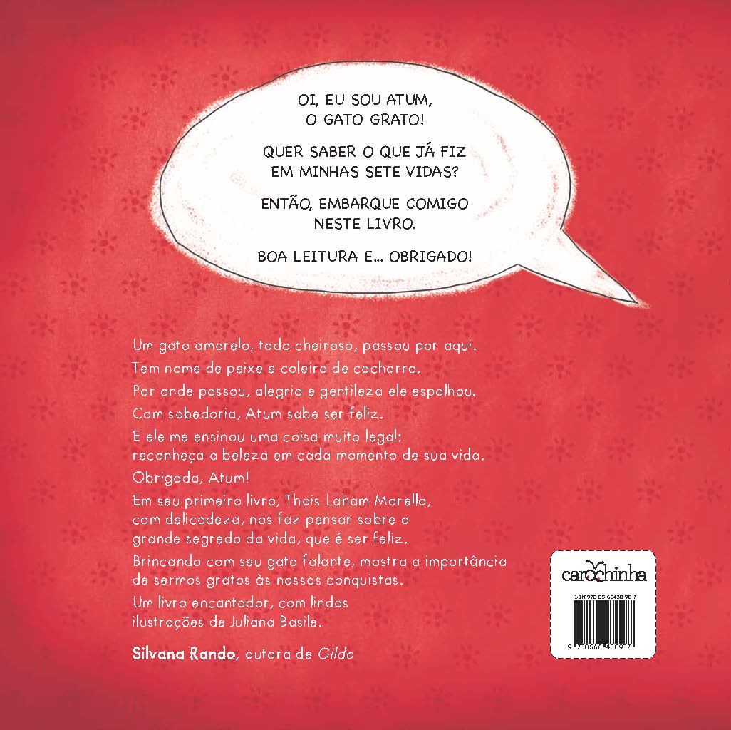 Conheça Atum, o gato com nome de peixe que já fez um pouco de tudo em suas longas sete vidas e que não se esquece de agradecer por isso. Descubra tudo o que ele é capaz de fazer em Atum, o gato grato, um livro para todos os amantes de bichinhos de estimação - principalmente gatos aventureiros!