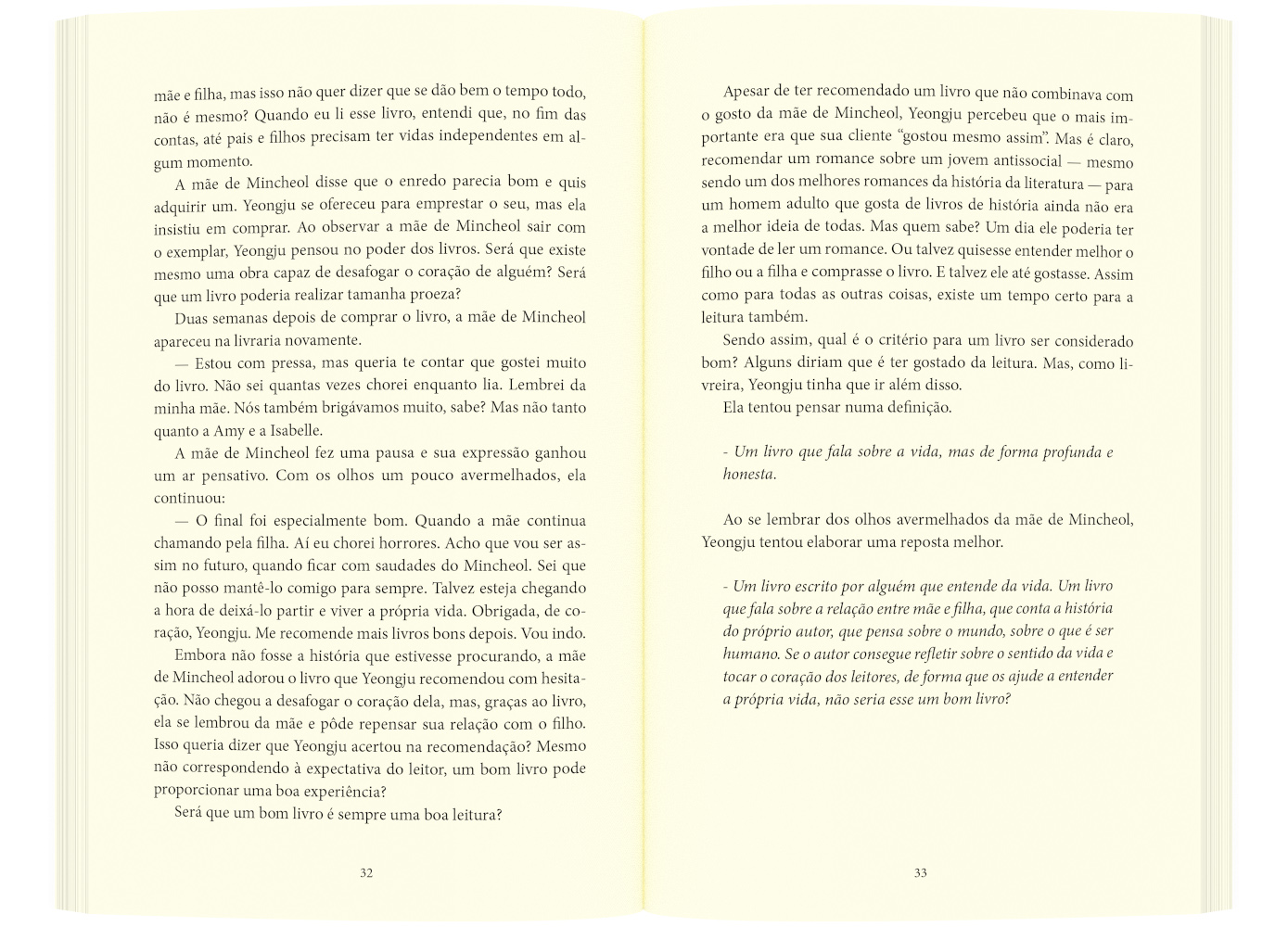 Repleto de diálogos sinceros e profundos, Bem-vindos à Livraria Hyunam-dong é uma história emocionante sobre os momentos decisivos da nossa vida e como os livros são capazes de curar feridas e mudar as pessoas.