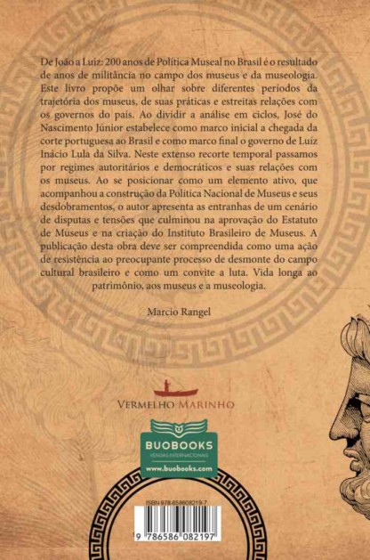 De João a Luiz: 200 anos de Política Museal no Brasil é o resultado de anos de militância no campo dos museus e da museologia. Este livro propõe um olhar sobre diferentes períodos da trajetória dos museus, de suas práticas e estreitas relações com os governos do país. Ao dividir a análise em ciclos, José do Nascimento Júnior estabelece como marco inicial a chegada da corte portuguesa ao Brasil e como marco final o governo de Luiz Inácio Lula da Silva. Neste extenso recorte temporal passamos por regimes autoritários e democráticos e suas relações com os museus. Ao se posicionar como um elemento ativo, que acompanhou a construção da Política Nacional de Museus e seus desdobramentos, o autor apresenta as entranhas de um cenário de disputas e tensões que culminou na aprovação dos Estatuto de Museus e na criação do Instituto Brasileiro de Museus. A publicação desta obra deve ser compreendida como uma ação de resistência ao preocupante processo de desmonte do campo cultural brasileiro e como um convite a luta. Vida longa ao patrimônio, aos museus e a museologia.