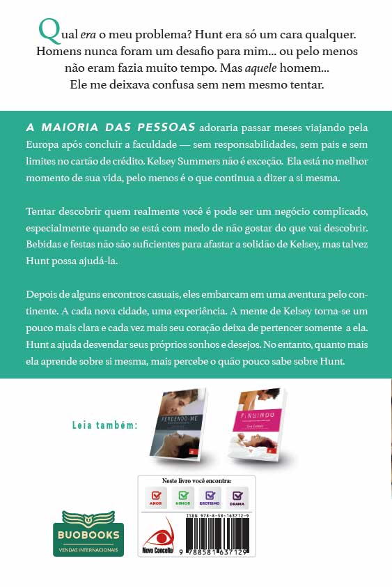 A maioria das pessoas adoraria passar meses viajando pela Europa após concluir a faculdade sem responsabilidades, sem pais e sem limites no cartão de crédito. Kelsey Summers não é exceção. Ela está no melhor momento de sua vida, pelo menos é o que continua a dizer a si mesma. Tentar descobrir quem realmente você é pode ser um negócio complicado, especialmente quando se está com medo de não gostar do que vai descobrir. Bebidas e festas não são suficientes para afastar a solidão de Kelsey, mas talvez Hunt possa ajudá-la. Depois de alguns encontros casuais, eles embarcam em uma aventura pelo continente. A cada nova cidade, uma experiência. A mente de Kelsey torna-se um pouco mais clara e cada vez mais seu coração deixa de pertencer somente a ela. Hunt a ajuda desvendar seus próprios sonhos e desejos. No entanto, quanto mais ela aprende sobre si mesma, mais percebe o quão pouco sabe sobre Hunt.