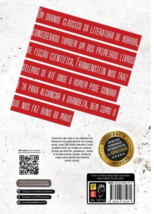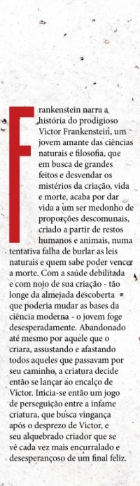 O romance relata a história de Victor Frankenstein, um estudante de ciências naturais, que desde muito jovem se dedicou aos estudos, até que um dia constrói um monstro em seu laboratório. Desde então novas experiências e aventuras começam a surgir, com muitas surpresa, e horror. Mary Shelley escreveu a história quando tinha apenas 19 anos, sendo a primeira obra de ficção científica da literatura e um clássico do terror.