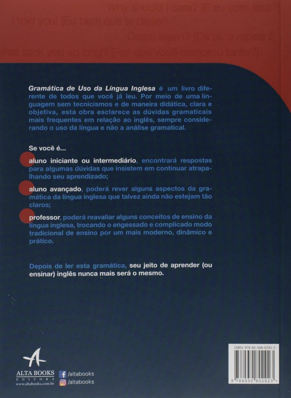 Você sabe quando usar corretamente as preposições em inglês? Sabe o que são modal verbs e como usá-los corretamente? Gramática de uso da língua inglesa evidencia que nem tudo em uma língua tem explicação na gramática normativa e oferece todas as ferramentas necessárias para que a forma de aprender e ensinar inglês nunca mais sejam as mesmas. Denilso de Lima apresenta ao leitor os tópicos gramaticais mais complicados do inglês de forma simples, didática e fácil. O objetivo do autor é ensinar a gramática da língua inglesa como ela é usada no cotidiano. Trata-se de um livro voltado pra quem quer aprender inglês definitivamente de modo rápido e inteligente.