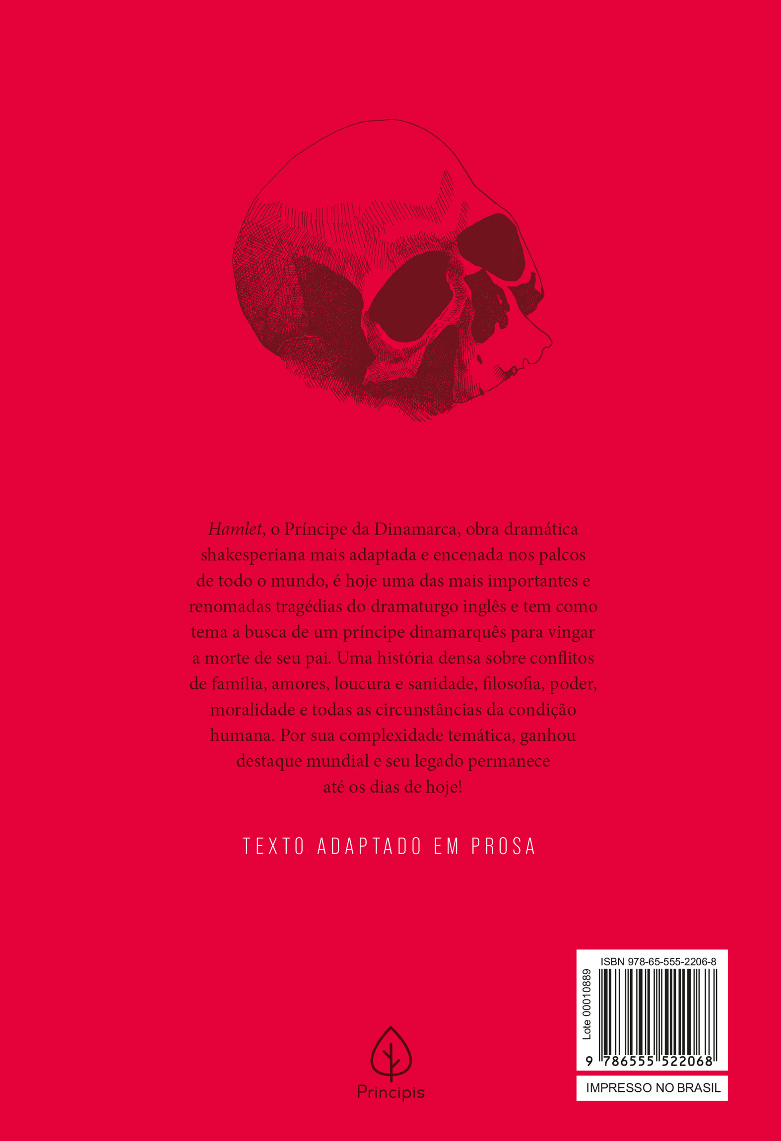Hamlet foi provavelmente escrita entre 1599 e 1602, mas não há até hoje uma data comprovada da gênese deste clássico da dramaturgia. Tendo como cenário a Dinamarca, mais precisamente o castelo de Elsinor, esta peça traz sua versão do destino do príncipe Hamlet, obrigado a empreender um drástico ato de revanche contra seu tio, para vingar a morte do pai. Adaptada pelo escritor Júlio Emílio Braz, o texto considerado a joia da coroa de uma carreira teatral triunfante, é daqueles para ser lido e relido inúmeras vezes.