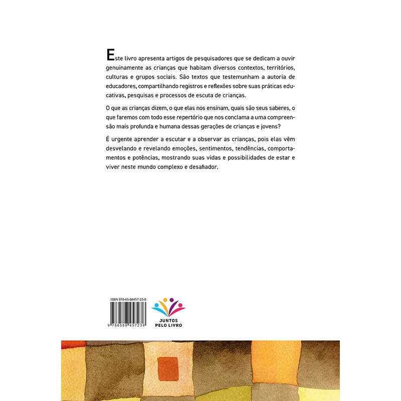Este livro apresenta artigos de pesquisadores que se dedicam a ouvir genuinamente as crianças que habitam diversos contextos, territórios, culturas e grupos sociais. São textos que testemunham a autoria de educadores, compartilhando registros e reflexões sobre suas práticas educativas, pesquisas e processos de escuta de crianças.