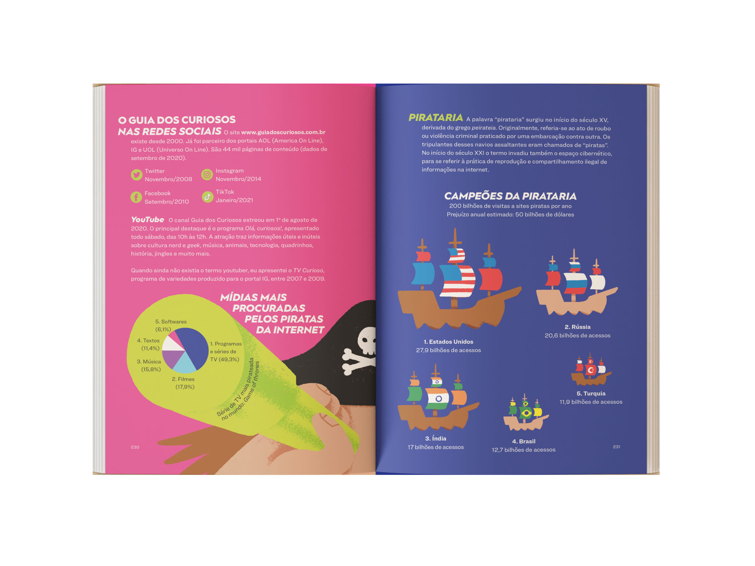 A gente achou essa história no... Google. Viu só? Então, para que você precisa desse O guia dos curiosos se está tudo dentro do Google? Aí é que está o engano. O Google só responde as perguntas que alguém fizer a ele. Ainda assim, é preciso tomar cuidado para que o algoritmo escolha fontes confiáveis. Pois o lado mais divertido do Guia, que encantou muitas gerações, são as surpresas e as descobertas que ele vai revelando a cada página. São temas e curiosidades que talvez nunca tenham passado por sua cabeça. Tem mais: esta edição comemorativa ganhou um projeto gráfico inovador e cores em todas as suas páginas. Que O guia dos curiosos continue nos passando conhecimento, informação e diversão por mais um googol de anos!