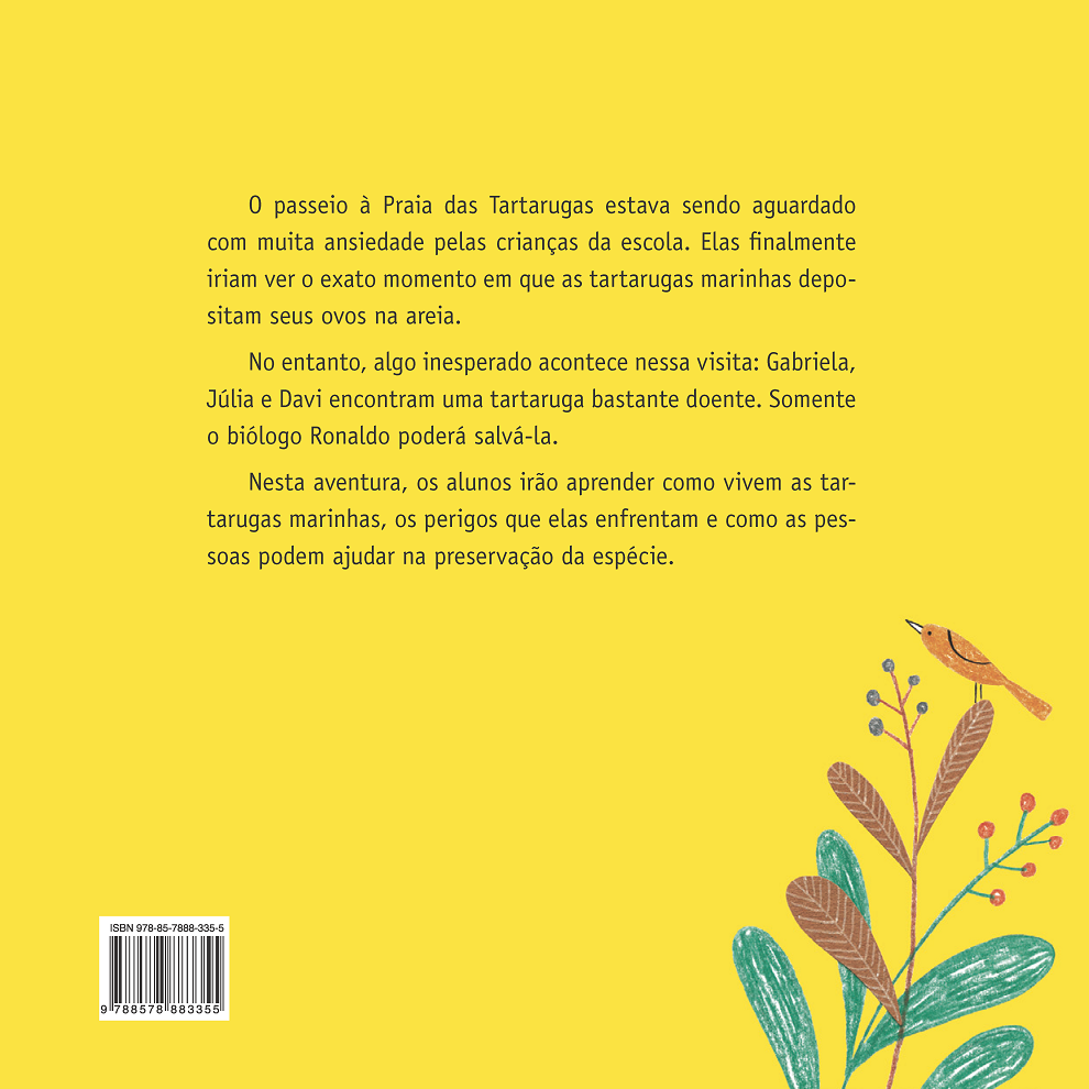O passeio à Praia das Tartarugas estava sendo aguardado com muita ansiedade pelas crianças da escola. Elas finalmente iriam ver o exato momento em que as tartarugas marinhas depositam seus ovos na areia. No entanto, algo inesperado acontece nessa visita: Gabriela, Júlia e Davi encontram uma tartaruga bastante doente. Somente o biólogo Ronaldo poderá salvá-la. Nesta aventura, os alunos irão aprender como vivem as tartarugas marinhas, os perigos que elas enfrentam e como as pessoas podem ajudar na preservação da espécie.