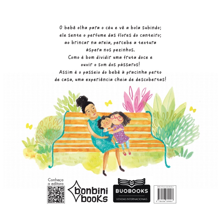 Um livro especialmente pensado para os bebês e para as crianças bem pequenas, que vão se identificar com esse bebê protagonista que brinca, explora, se diverte e descobre os cheiros, as cores, as texturas e até os sons da natureza em um passeio com a família até a pracinha perto de casa. Brinque e se encante com esse livro cheio de movimento!