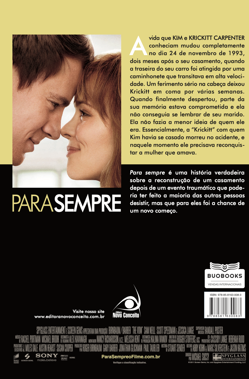 Essa história muito inspiradora deu origem ao filme lançado em 2012. Para sempre foi escrito por Kim Krickitt, um homem que revela o verdadeiro significado do amor.
