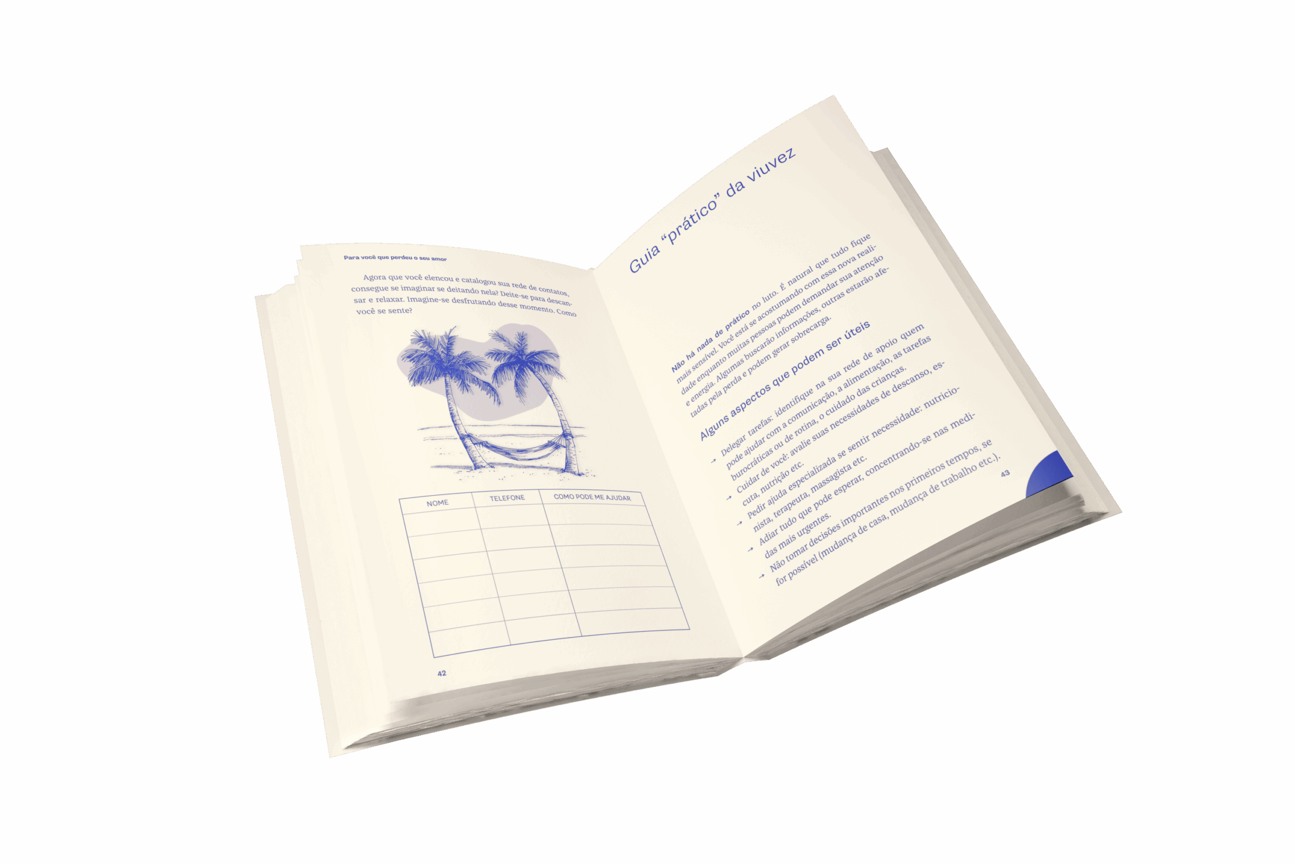 Pensada para todos os tipos de relacionamento amoroso e escrita com linguagem descomplicada, a obra oferece atividades e conceitos básicos para ajudar a pessoa enlutada a compreender melhor seus sentimentos e lidar com os aspectos práticos da viuvez. Cada capítulo pode ser lido de forma independente e inclui espaços para registrar memórias e sentimentos, facilitando a elaboração do luto. Além disso, as autoras abordam temas como o que fazer com a aliança e como criar rituais e práticas de bem-estar e equilíbrio. Trata-se de uma leitura leve para um momento difícil, comprometida em ser uma referência útil e acessível.