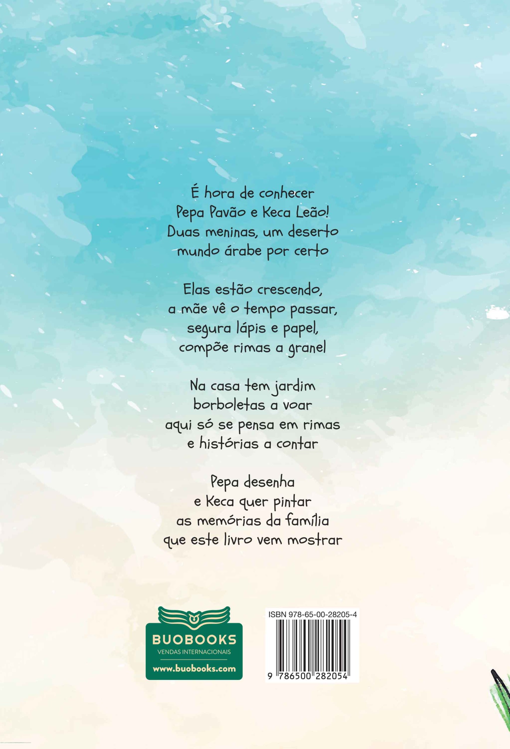 É hora de conhecer Pepa pavão e Keca Leão! Duas Meninas, um deserto mundo árabe por certo. Elas estão crescendo, a mãe vê o tempo passar, segura o lápis e papel, compõe rimas a granel. Na casa tem jardim, borboletas a voar, aqui só se pensa em rimas e histórias a contar. Pepa desenha e Keca quer pintar as memórias da família que este livro vem mostrar.