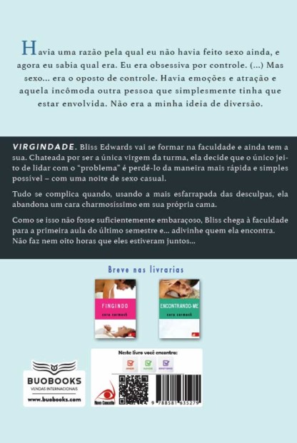 Bliss Edward vai se formar na faculdade e ainda é virgem. Chateada por ser a única da turma, ela decide que o único jeito de lidar com o "problema" é perdê-lo da maneira mais rápida e simples possível – com uma noite de sexo casual. Aos 22 anos, ela sempre esteve no controle da situação, e, já que ainda não encontrou o cara certo, resolve que precisa deixar de ser virgem com algum homem "errado" mesmo. Tudo se complica quando, usando a mais esfarrapada das desculpas, ela abandona um cara charmosíssimo dormindo em sua própria cama. O problema é que o seu jeito prático de resolver as coisas acaba lhe pregando uma peça: Bliss chega à faculdade para a primeira aula do último semestre e... adivinhe quem ela encontra. Não faz nem oito horas que eles estiveram juntos, e pelo próximo semestre inteiro, ela vai ter que se encontrar com o bonitão do bar todas as manhãs... E ele vai fazer questão de provocá-la – no bom e no mau sentido. Autora best-seller do The New York Times e USA Today - Primeiro livro de uma trilogia que fala sobre sexo e perda da virgindade para adolescentes.