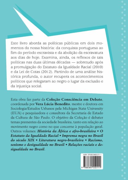 Este livro aborda as políticas públicas em dois momentos da nossa história: da conquista portuguesa ao fim do período escravista e da abolição da escravatura aos dias de hoje. Examina, ainda, os reflexos de tais políticas nas duas últimas décadas — sobretudo após a promulgação do Estatuto da Igualdade Racial (2010) e da Lei de Cotas (2012). Partindo de uma análise histórica profunda, o autor recupera os acontecimentos políticos que relegaram ao negro o lugar da exclusão e da injustiça social.
