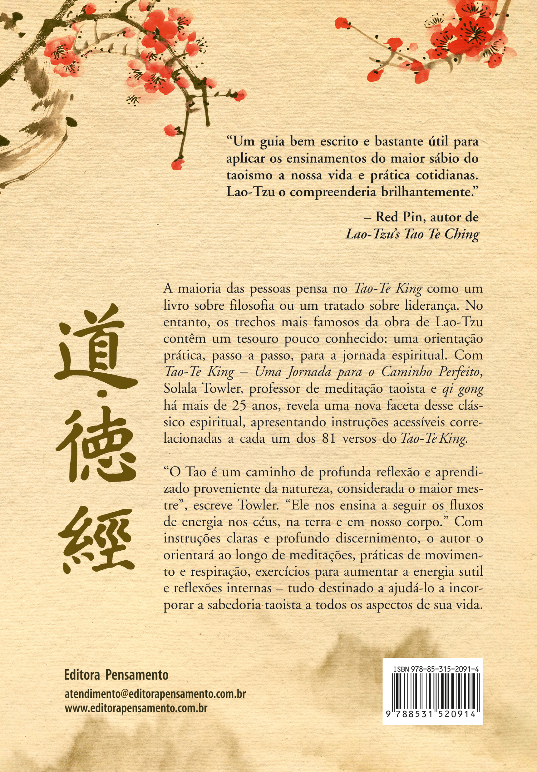 Towler, professor de meditação taoista e qi gong há mais de 25 anos, revela uma nova faceta desse clássico espiritual, apresentando instruções claras e acessíveis correlacionadas a cada um dos 81 versos do Tao-Te King, além de orientar meditações, práticas de movimento e respiração, exercícios para aumentar a energia sutil e reflexões internas – tudo destinado a ajudá-lo a incorporar a sabedoria taoista a todos os aspectos de sua vida.