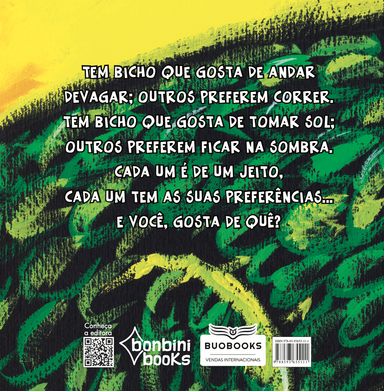 O pinguim gosta de andar em bando; a hiena, de dar risada. E você, gosta de quê? Este livro mostra à criança pequena um pouco do jeito e das manias de uma porção de bichos. Tem papagaio, hiena, foca, macaco, zebra e muito mais. Neste livro bem colorido, o bebê e a criança pequena vão se divertir em descobrir tudo aquilo que os bichos sabem fazer. No canal do Youtube da Editora Bamboozinho, a editora parceira da Bon Bini Books no Brasil, o leitor pode assistir a uma divertida animação mostra cada um dos bichos mostrados neste livro, complementando as imagens do livro ao ritmo de uma trilha sonora exclusiva. Obra aprovada e selecionada pelo Ministério da Educação (MEC/Brasil).
