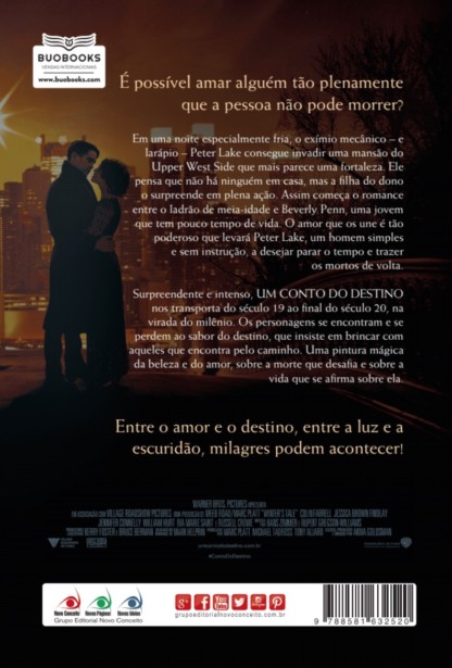 O amor que os une é tão poderoso que levará Peter Lake, um homem simples e sem instrução, a desejar parar o tempo e trazer os mortos de volta. Surpreendente e intenso, Um conto do destino nos transporta do século 19 ao final do século 20, na virada do milênio. Os personagens se encontram e se perdem ao sabor do destino, que insiste em brincar com aqueles que encontra pelo caminho. Uma pintura mágica da beleza e do amor, sobre a morte que desafia e sobre a vida que se afirma sobre ela.